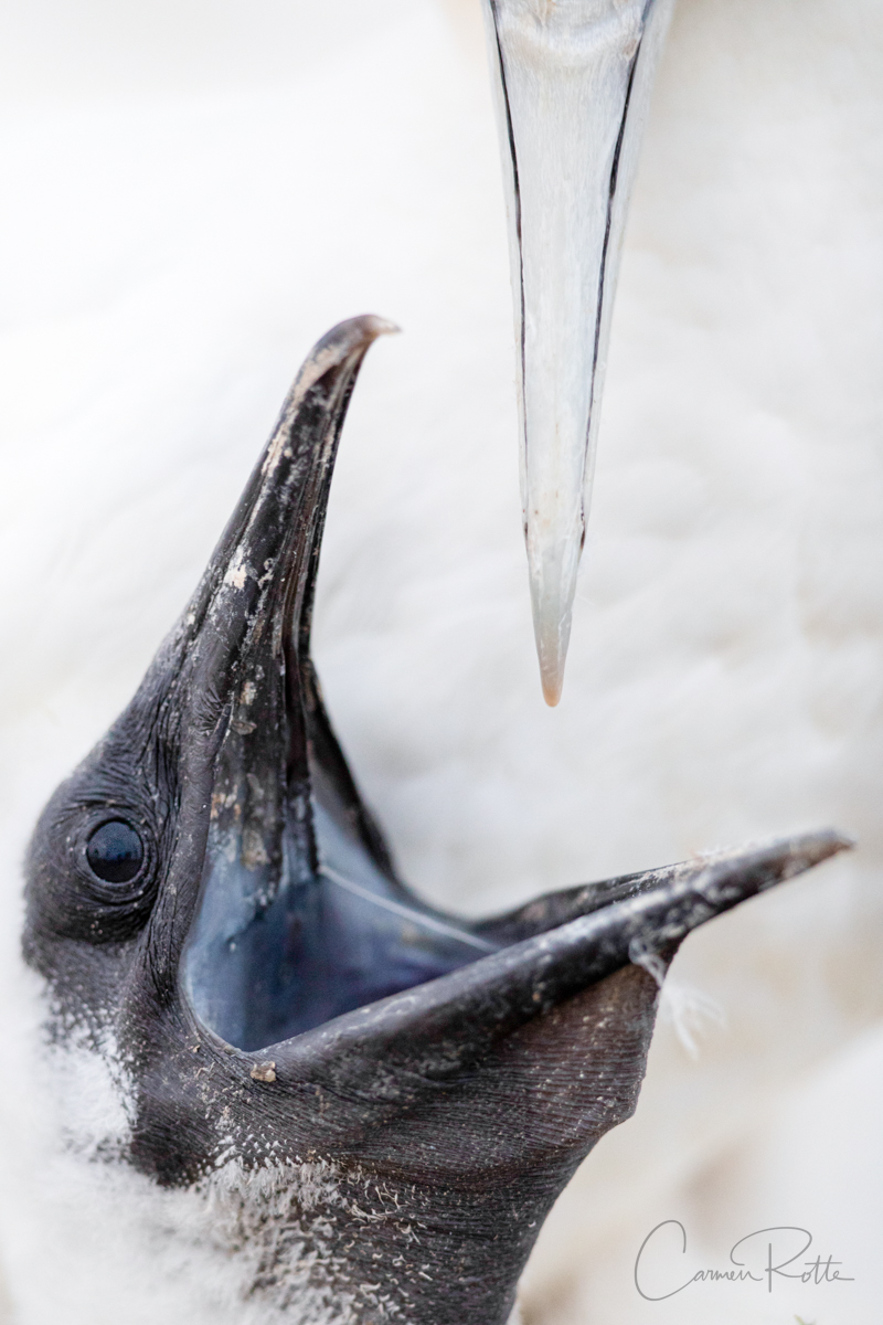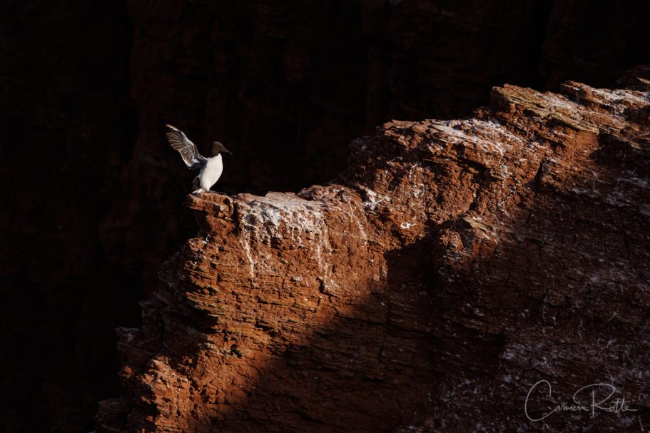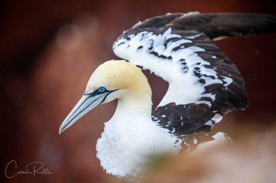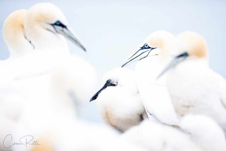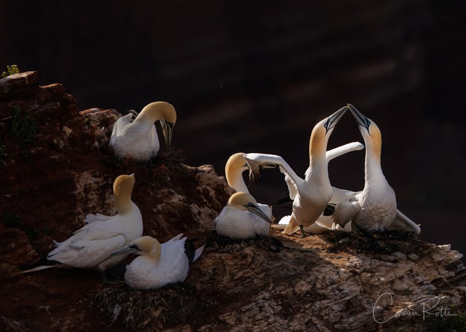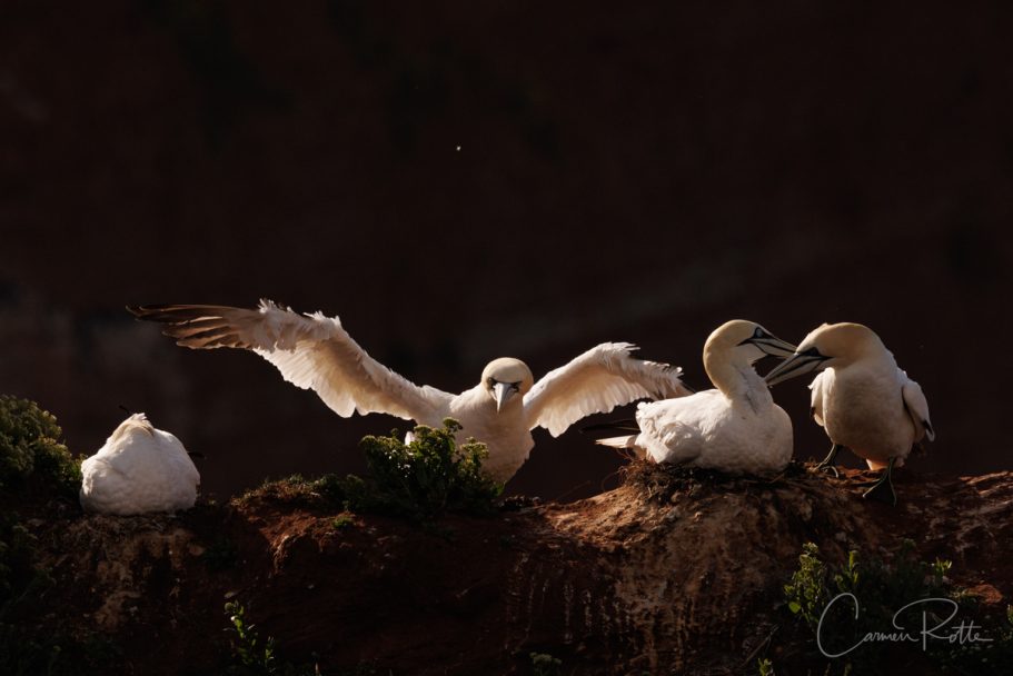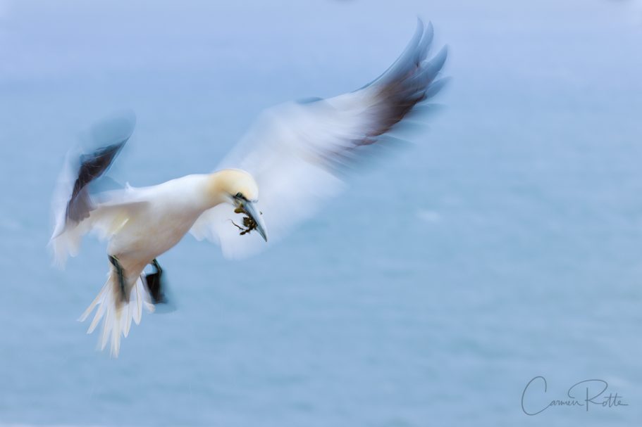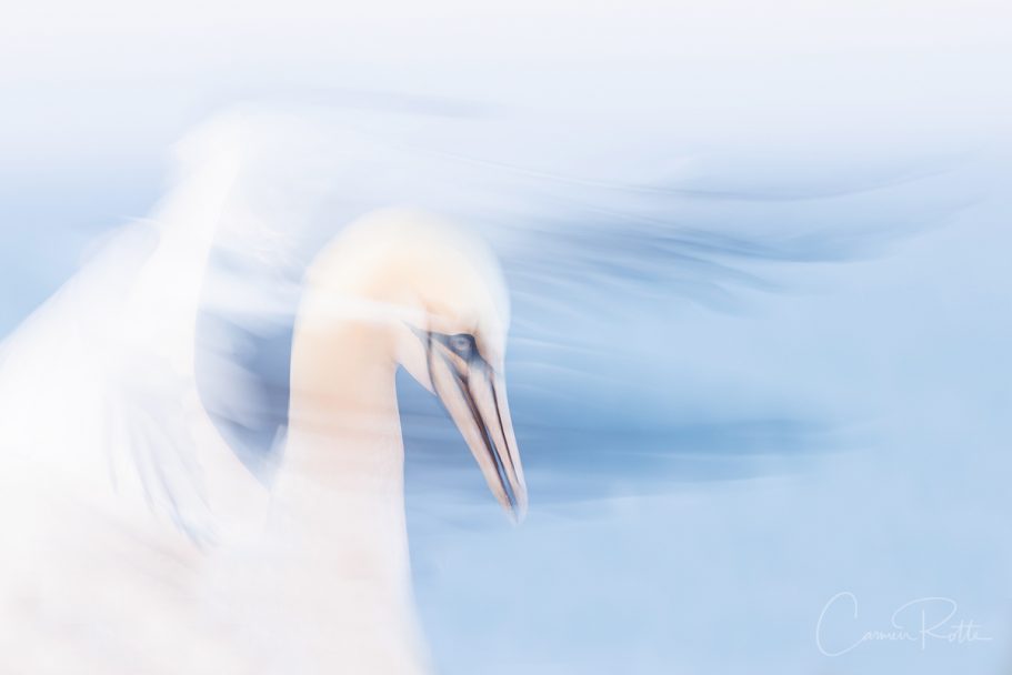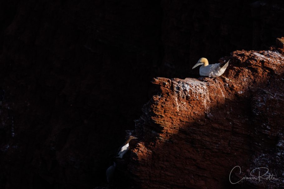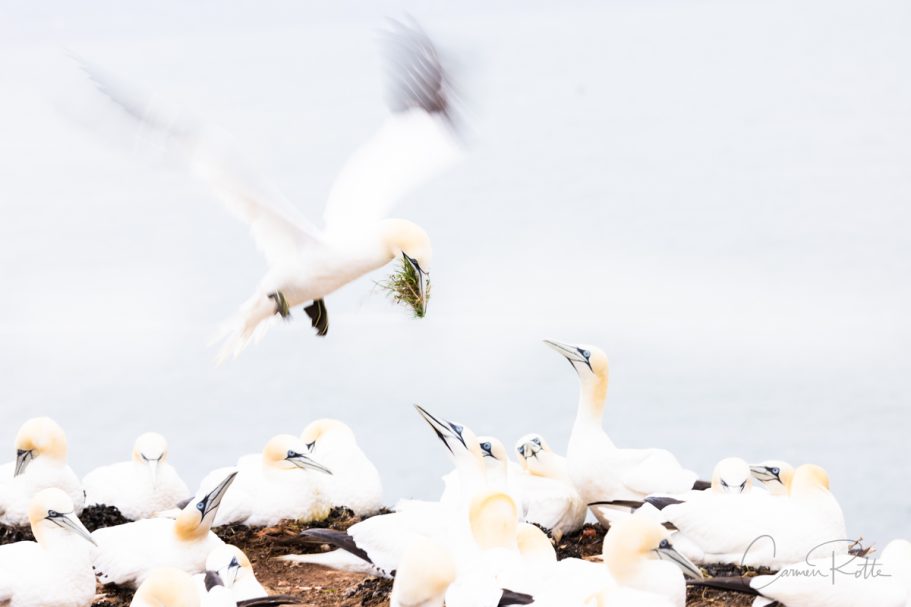 The storm on the coast of Helgoland whips me in the face, at some moments I find it hard to resist the gusts. The elegant gannets, however, are not impressed by the wind at all. They keep flying to the rocks and manage to land on the right nest despite strong crosswinds. A quick peck at their intrusive neighbor, then a loving beak to their mate - the sexes are indistinguishable by their plumage. So close to the gannets you can try a lot photographically, and two great workshops with Radomir Jakubowski and Uwe Hasubek did the rest, but...