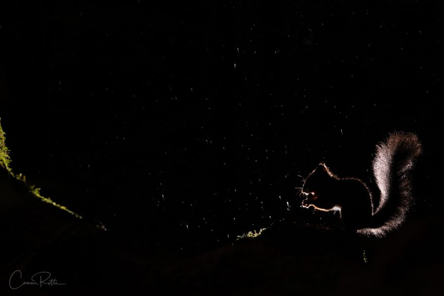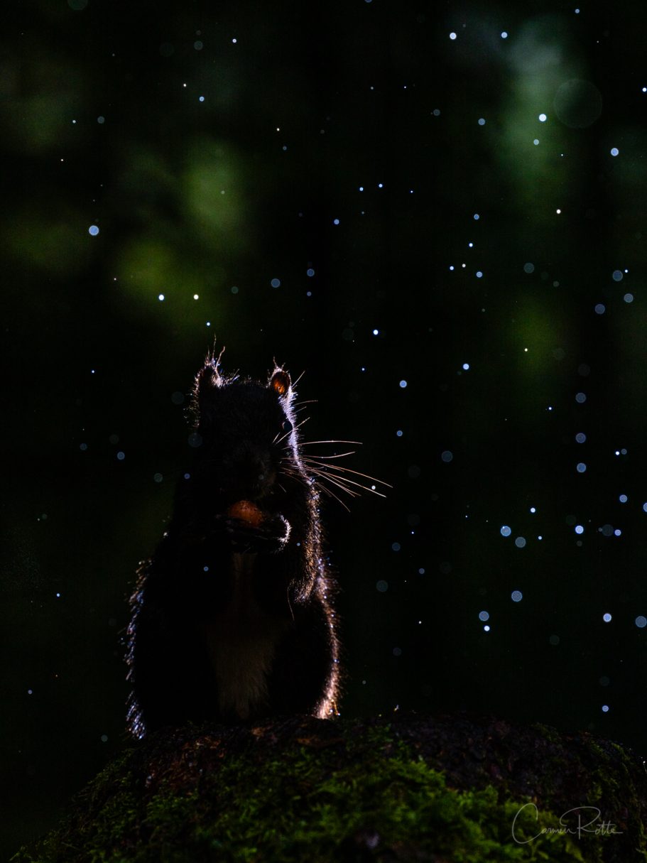Heavy raindrops are falling from the trees onto our cameras, our jackets are more or less soaked through. The three of us - two photographer friends and myself - are on a workshop with Stefan Imig. We have been standing in the constant pouring rain in a small forest in Bavaria for two days now, photographing squirrels and nutcrackers accustomed to humans. So much for the theory.
