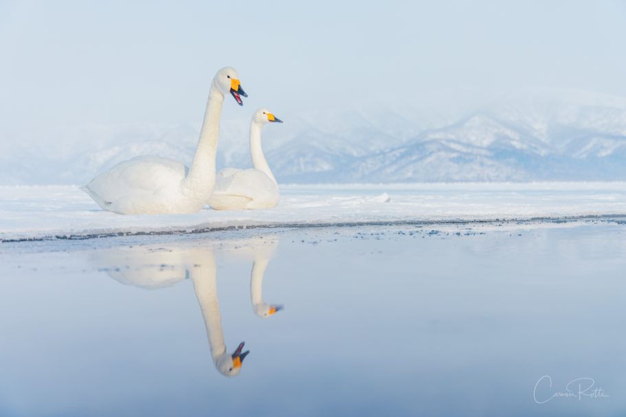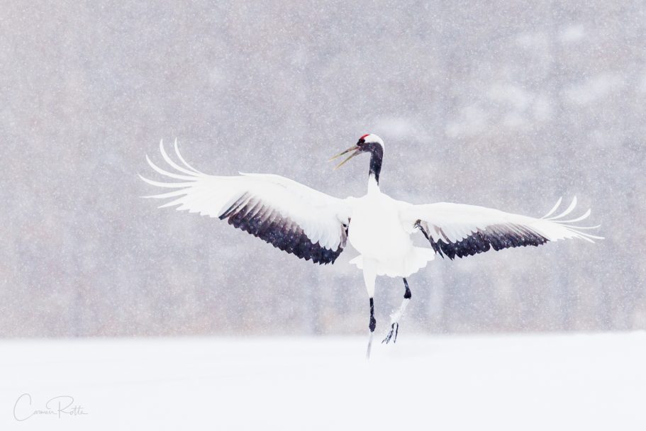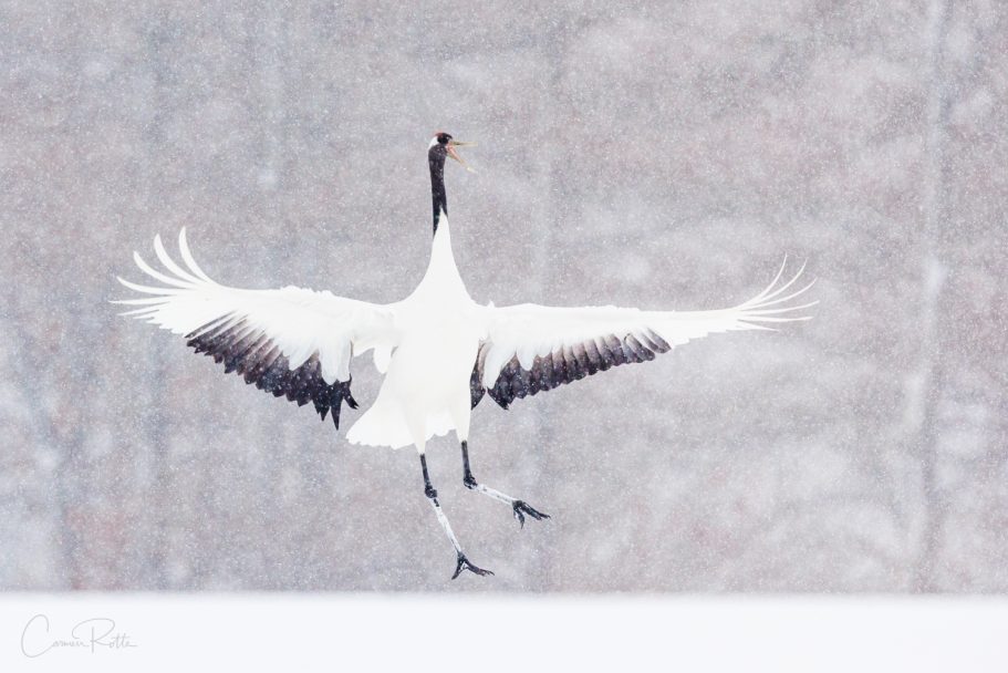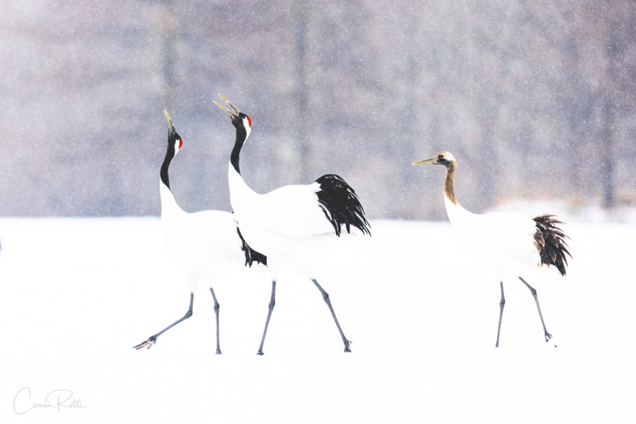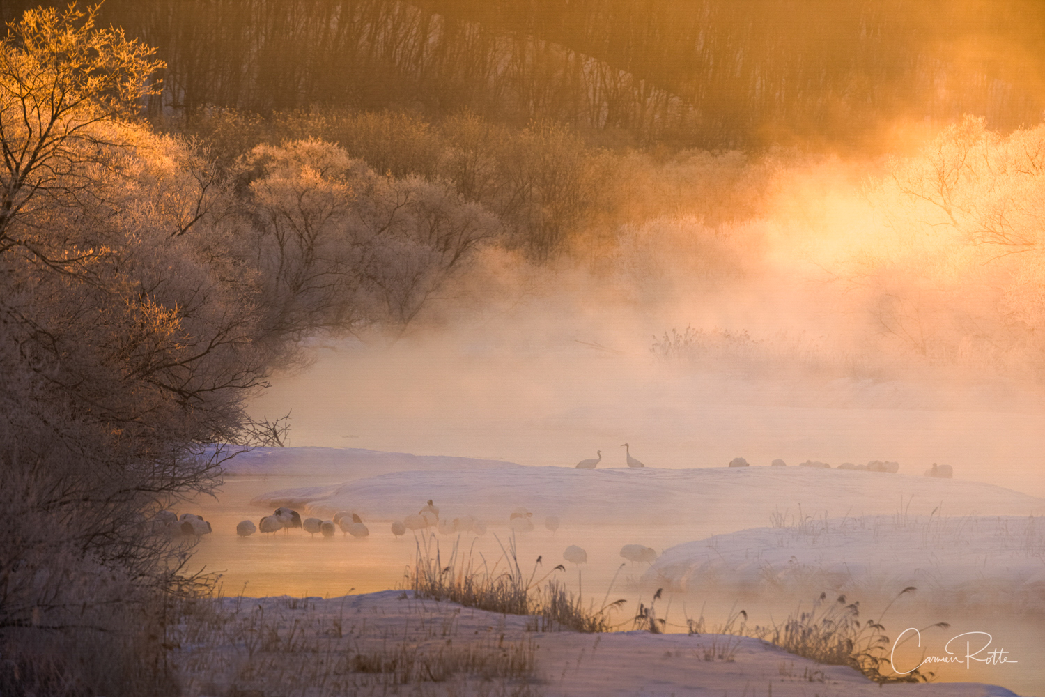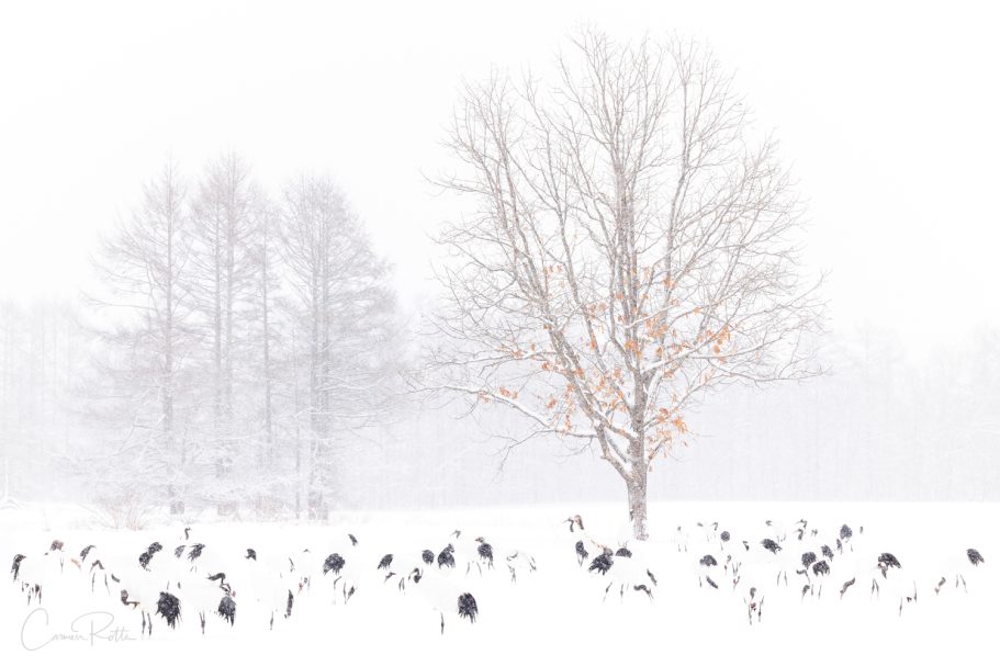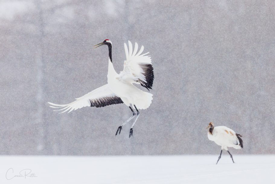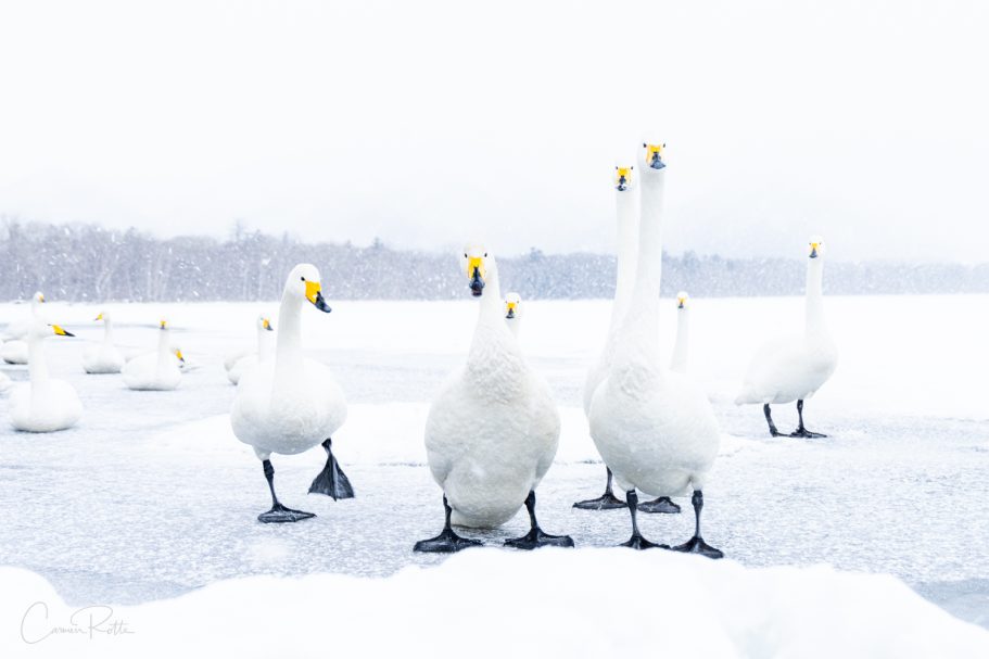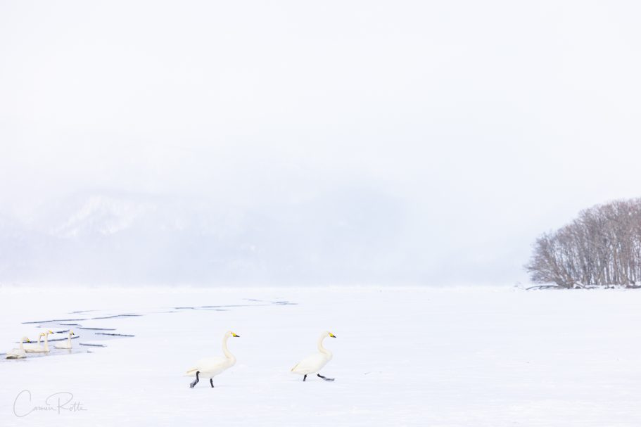 Hokkaido in winter is minimalism and reduction to black and white, with a fascinating wildlife: whooper swans swimming on Kusharo Lake with its breathtaking mountain scenery, elegantly dancing cranes, Steller's sea eagles powerfully hunting for fish and monkeys playfully jumping in the snow after having taken a bath in a steaming pond. This superb tour, organized by Uwe Hasubek, was also an immersion in a foreign culture, as we happily fell into our beds in a traditional ryokan after a perfect day of photographing.