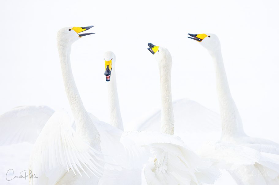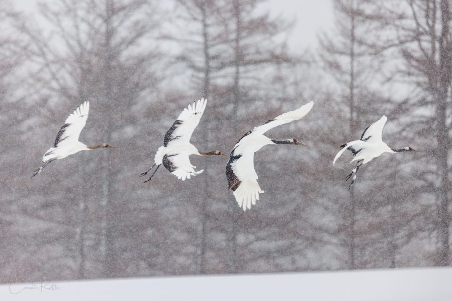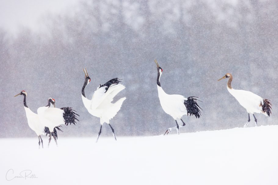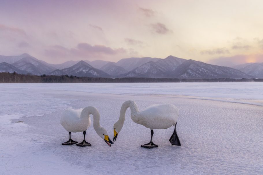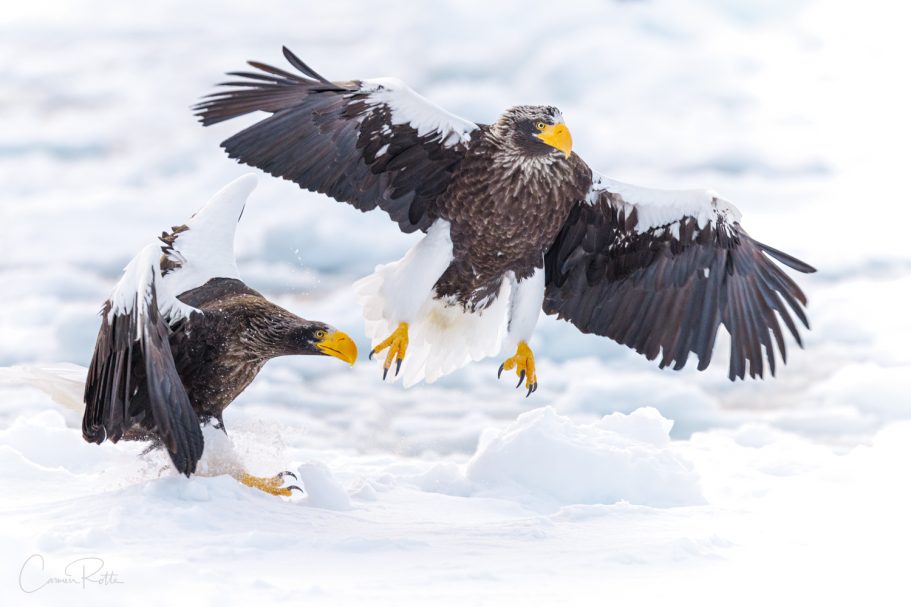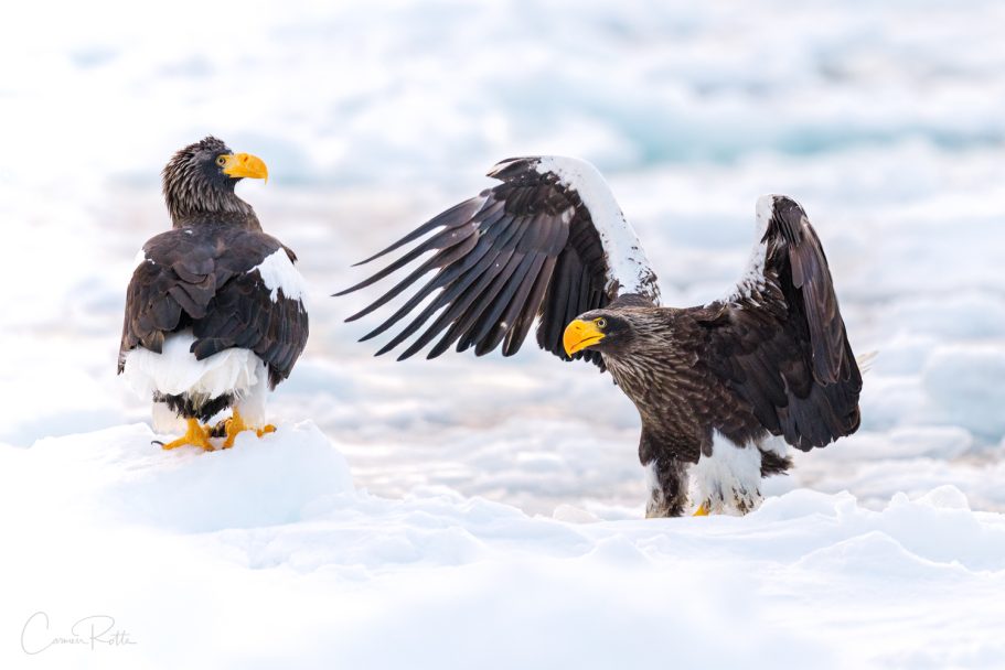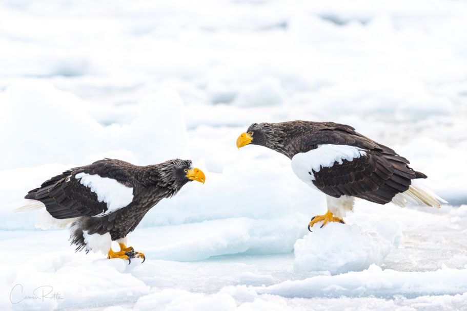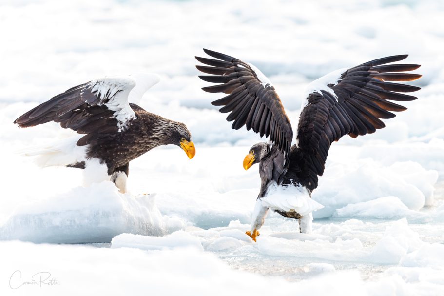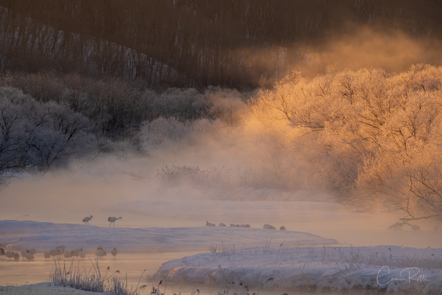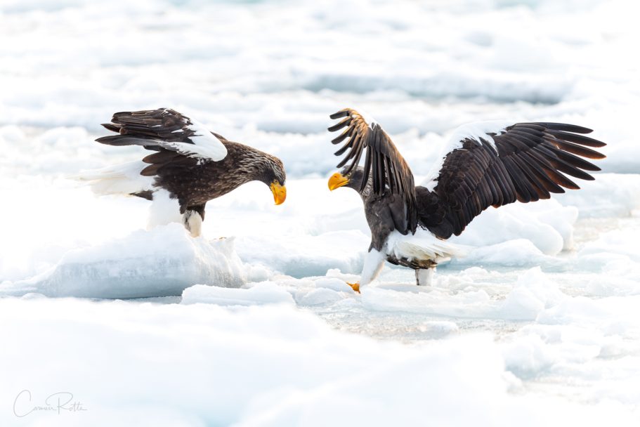 Hokkaido in winter is minimalism and reduction to black and white, with a fascinating wildlife: whooper swans swimming on Kusharo Lake with its breathtaking mountain scenery, elegantly dancing cranes, Steller's sea eagles powerfully hunting for fish and monkeys playfully jumping in the snow after having taken a bath in a steaming pond. This superb tour, organized by Uwe Hasubek, was also an immersion in a foreign culture, as we happily fell into our beds in a traditional ryokan after a perfect day of photographing.