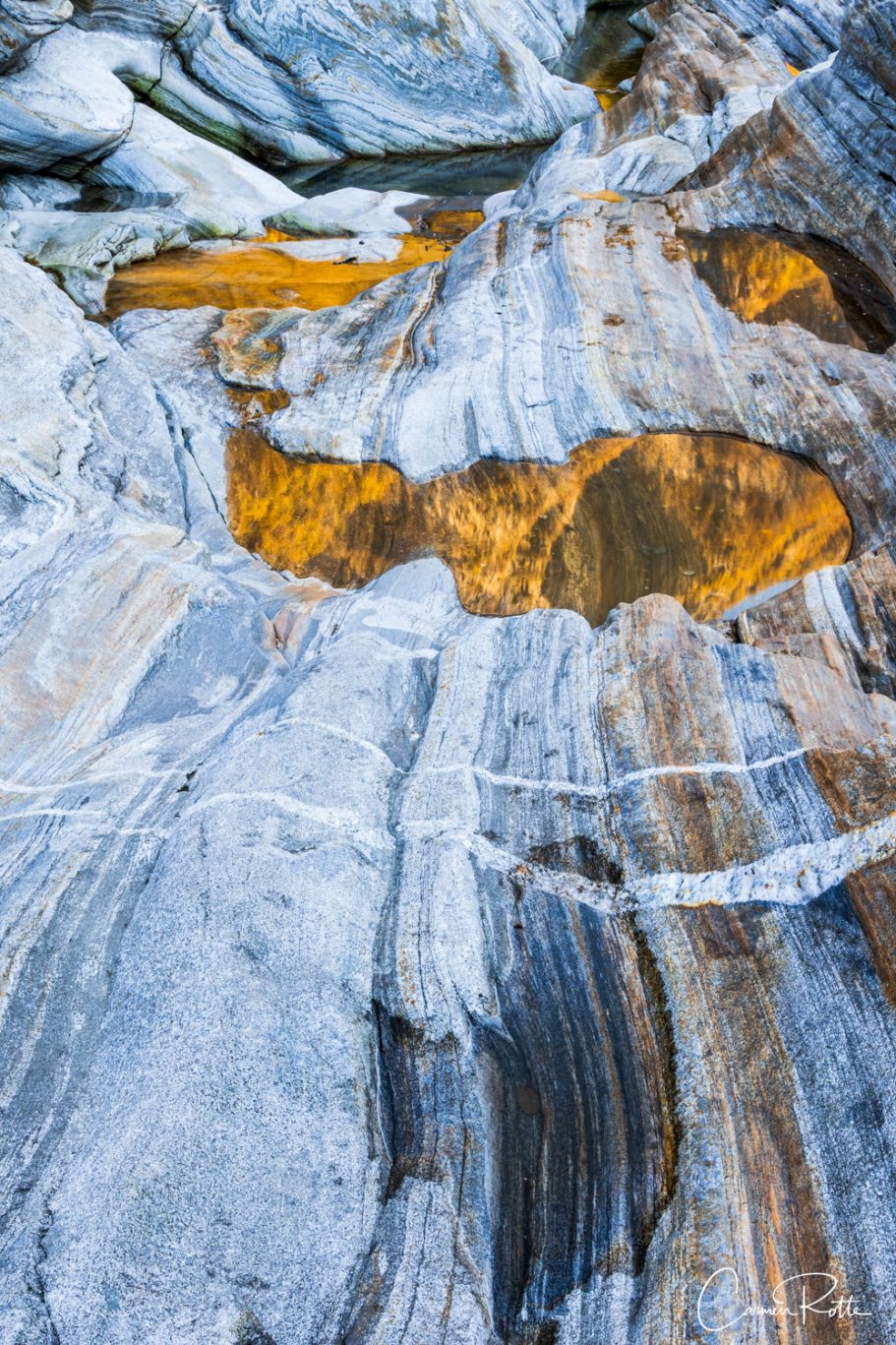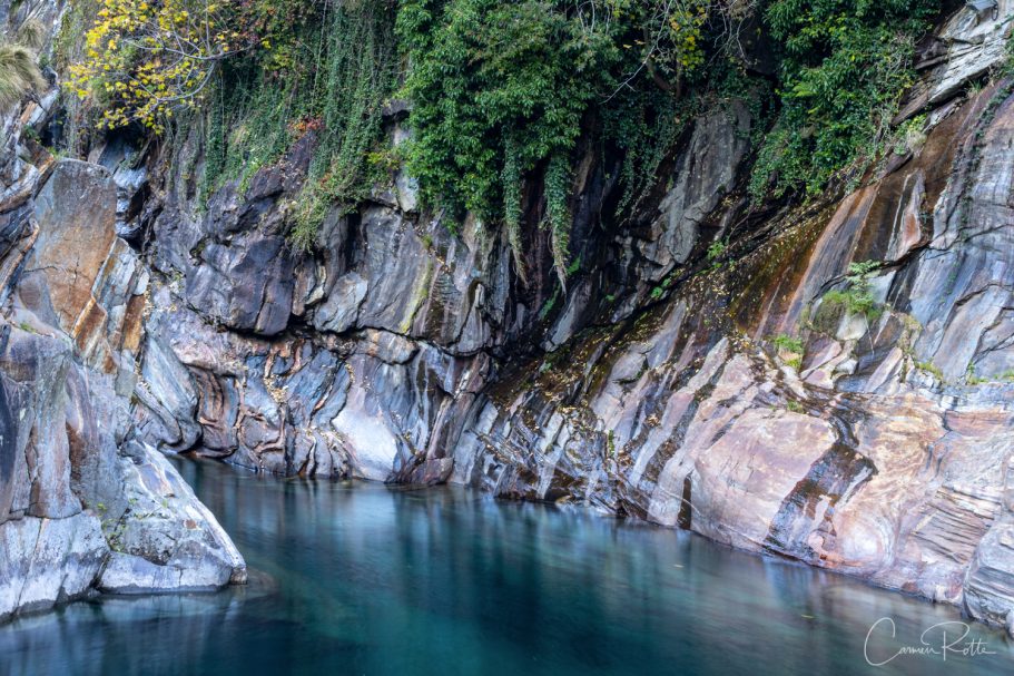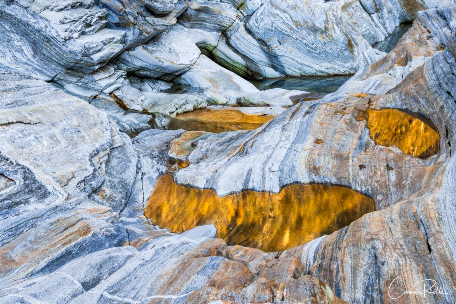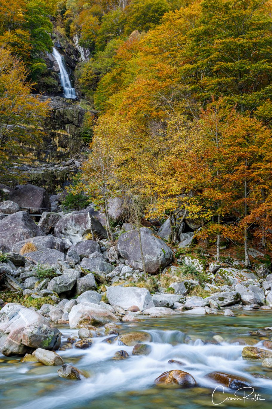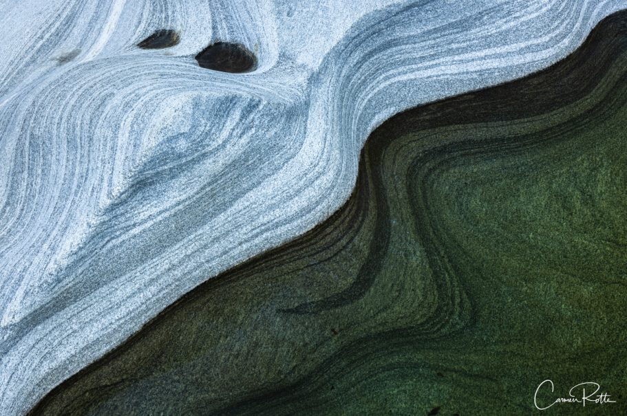 At a workshop with Radomier Jakubowski, we are standing at what I consider to be the most beautiful spot in the Valle Versasca. There are so many different structures, shapes and colors right next to and in the river that I find it really hard to focus on one subject. What I like to do in such moments is to pack up the camera again and walk back and forth until the impressions sort themselves out.