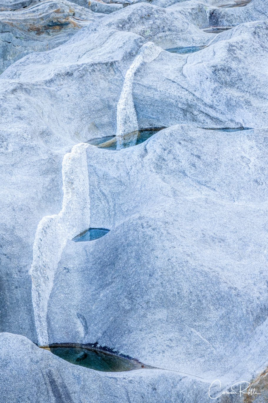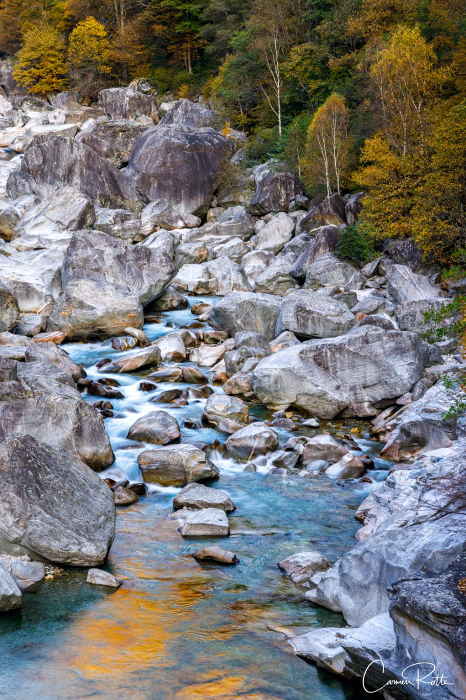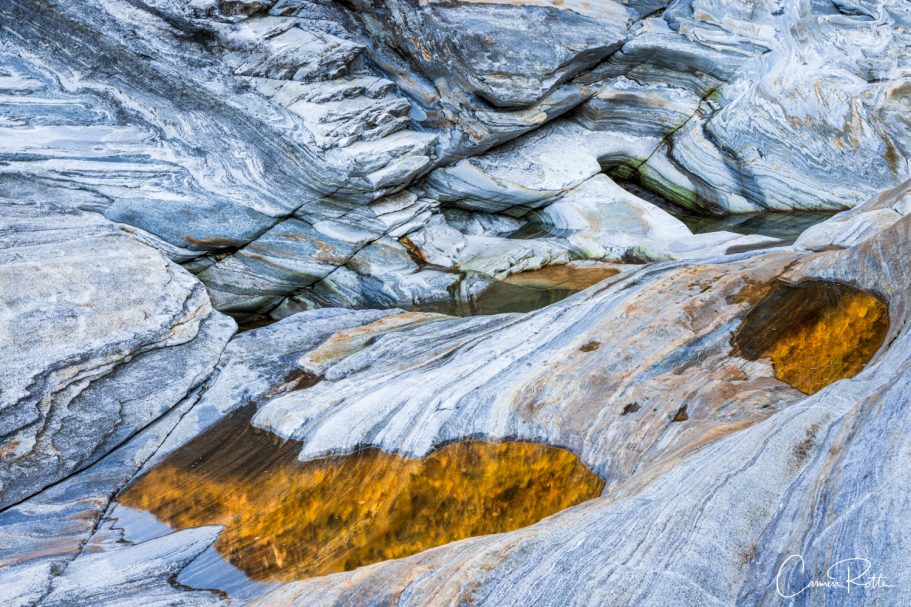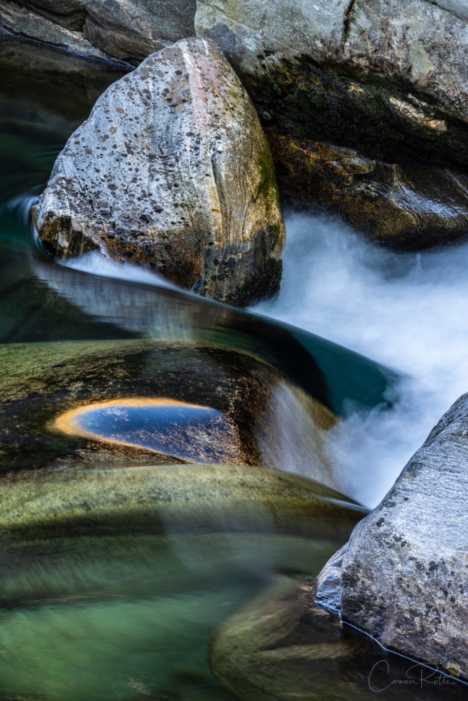 At a workshop with Radomier Jakubowski, we are standing at what I consider to be the most beautiful spot in the Valle Versasca. There are so many different structures, shapes and colors right next to and in the river that I find it really hard to focus on one subject. What I like to do in such moments is to pack up the camera again and walk back and forth until the impressions sort themselves out.